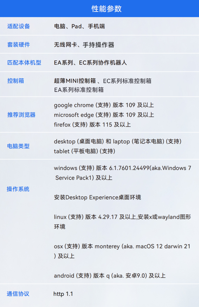 E-Wireless无线套装产品,支持手机/电脑/pad跨设备多端协同,基于浏览器的WebUI示教软件,可满足用户2个核心诉求: