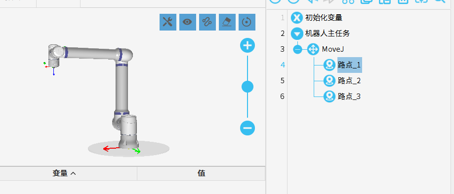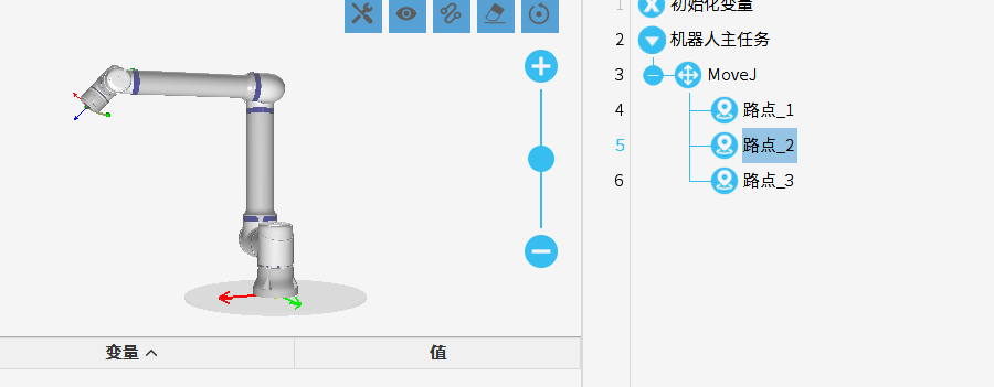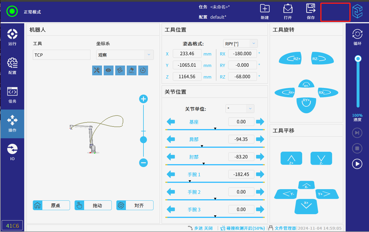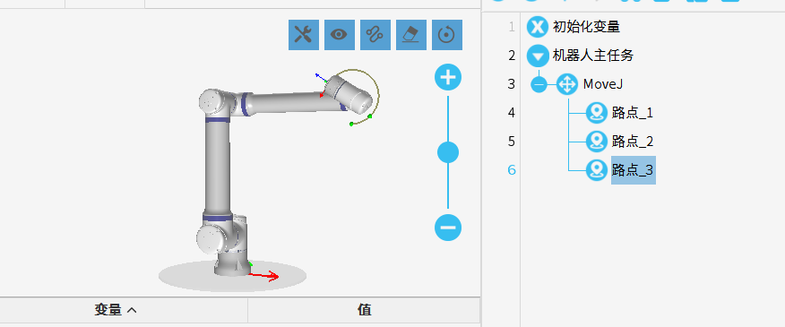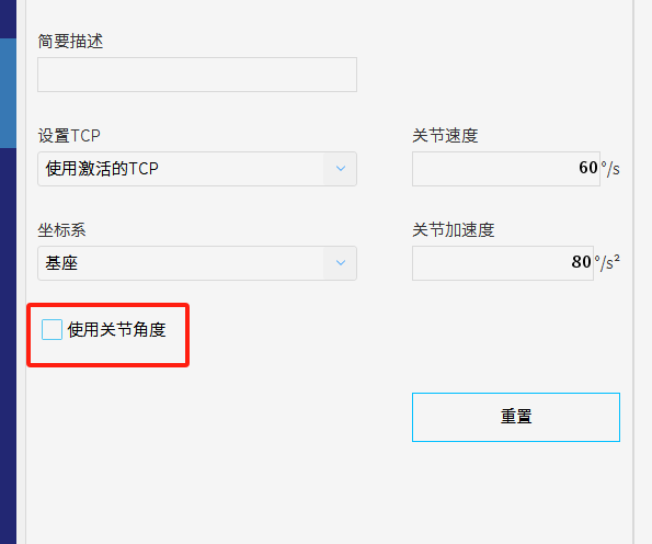 2、  在movej选择关节角度下可以在4关节并不水平进行执行程序,如下图