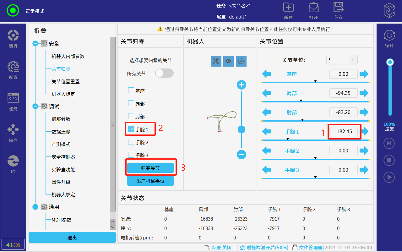 4、如出现手腕1,不平的情况可以尝试修改关节零点位置,步骤如下