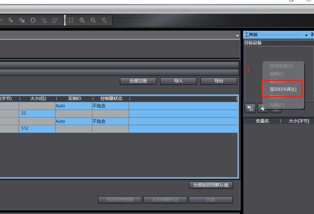 15、 注册完成后点击工具箱空白处,点击显示 EDS 库,点击左下角安装,找到机器人 EDS 文 件安装,成功后页面出现Elite Intelligence