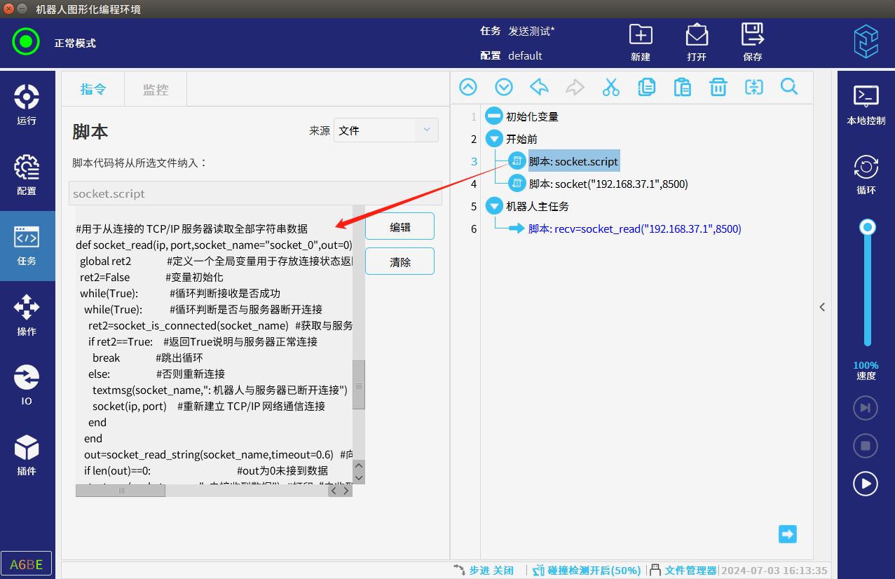 本篇文章介绍CS机器人作客户端在使用脚本与服务器做socket通讯时怎么样循环判断连接,通讯断开后怎么样自动连接,以下内容要求机器人应用2.12及以上
