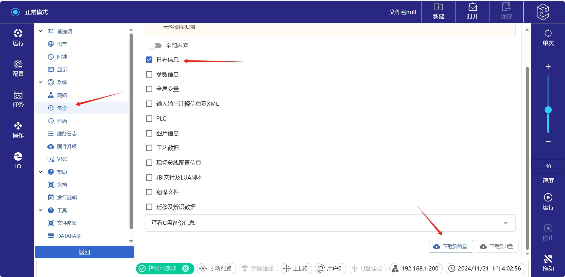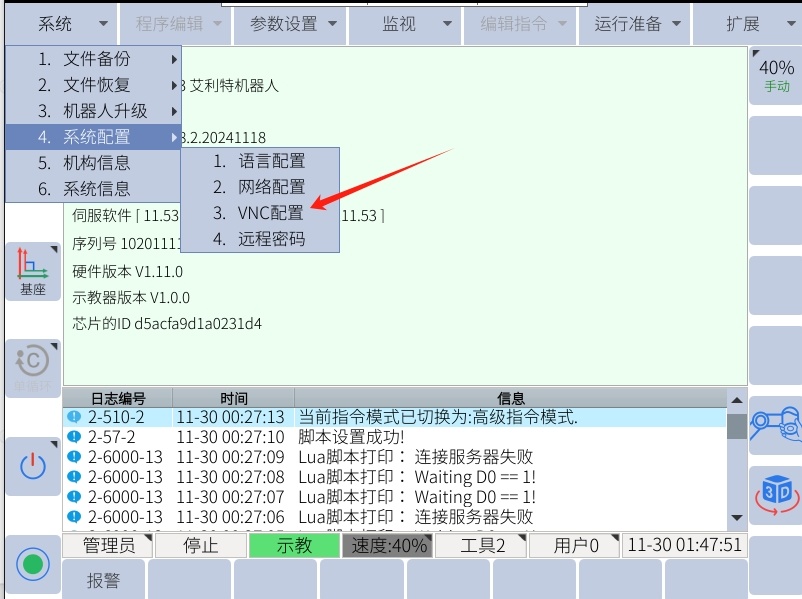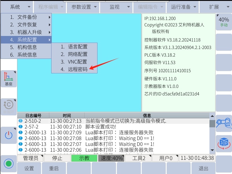 在机器人使用过程中如果 u 盘接口损坏或者没有 u 盘的时候需要拷贝报警日志,可使用如下方法查看报警日志: