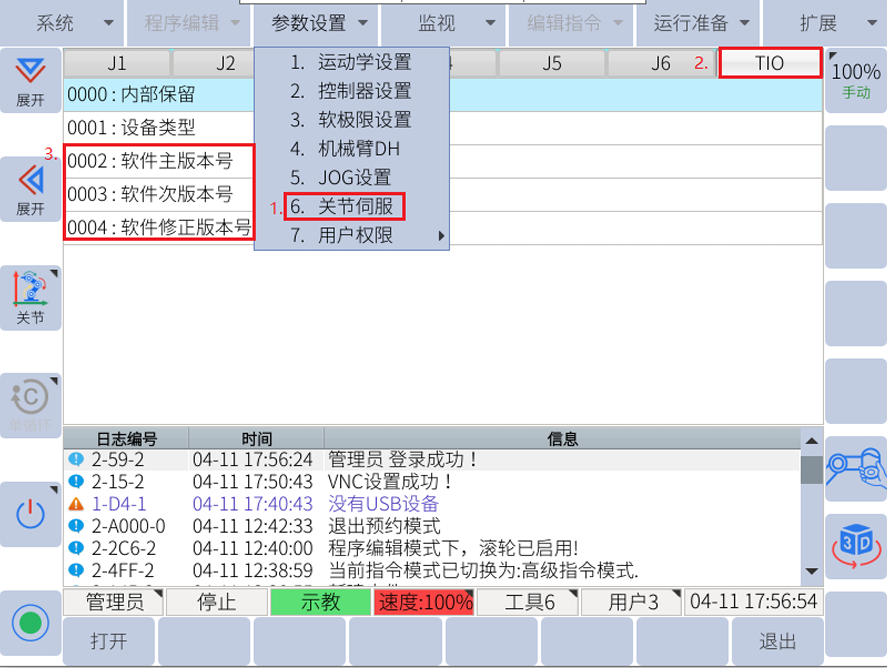 末端工具IO版本查看方法: