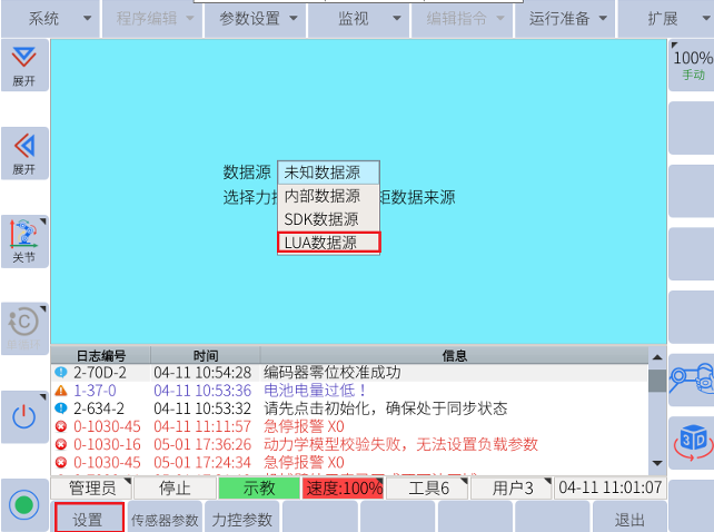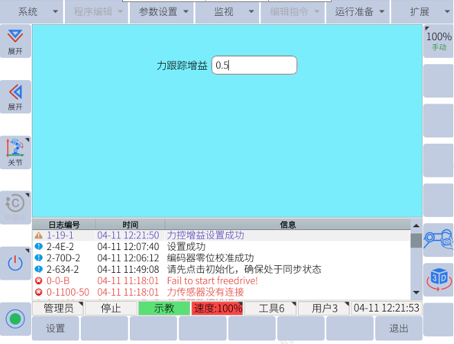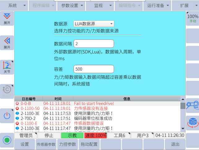 扩展-力控模式配置-力控参数-输入参数-点击设置。