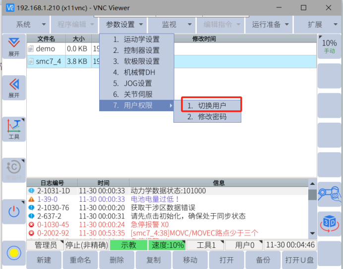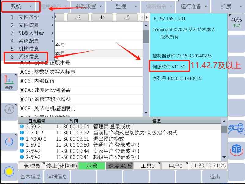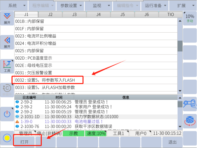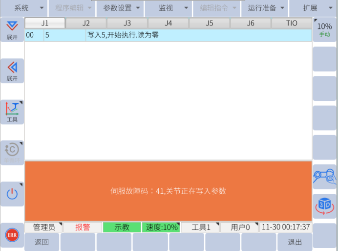 改为5后机器人会提示报警,等待几秒后清除报警,然后断电重启机器人