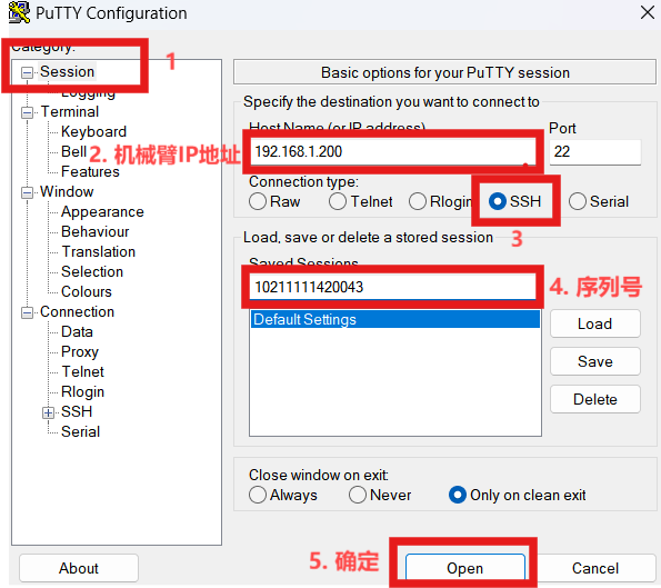1.  打开putty软件