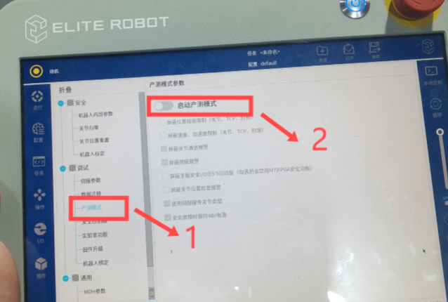 ●  进入专家模式,选择”产测模式”  ,并点击”启动产测模式”,如下图。