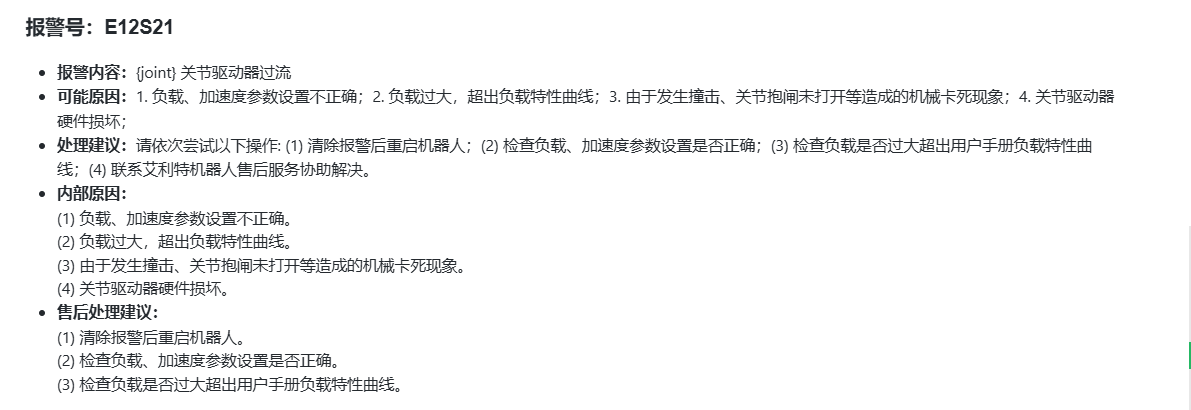 E12S21:{joint} 关节驱动器过流