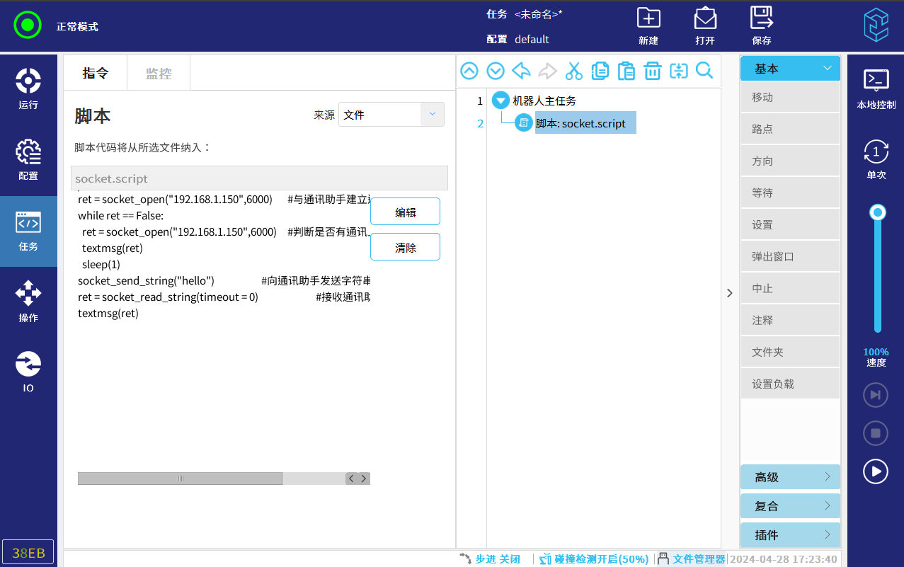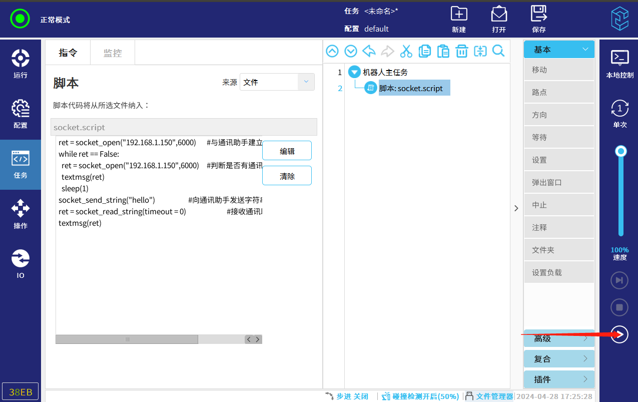 2.6. 编写通讯脚本。详情参考CS脚本手册-通讯目录下的socket,可在今年会jinnianhui(中国)官网下载。技术资料-今年会jinnianhui(中国)机器人