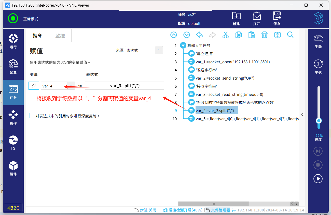 socket通信协议,一种标准的通信协议,同时是目前工业电子设备之间常用的通讯协议,市面上机器人与夹持器,视觉,上位机等通讯大多采用这种通讯方式。以下介绍机器人socket通讯基本的几个指令脚本,传输字符串数据和解析字符串数据。