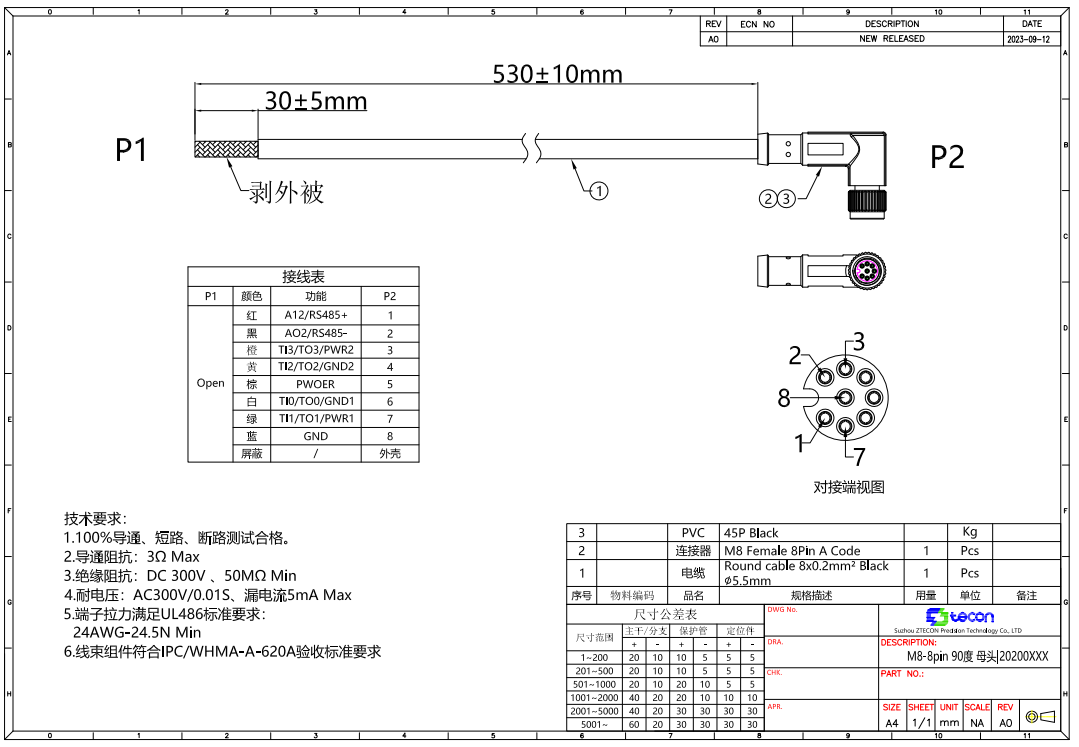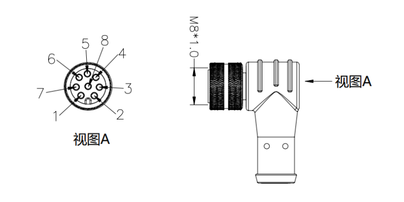 如果是用今年会jinnianhui(中国)提供的8芯弯头成型线,【物料号NA20300180】如图;则针脚编号、线序颜色为固定排序。