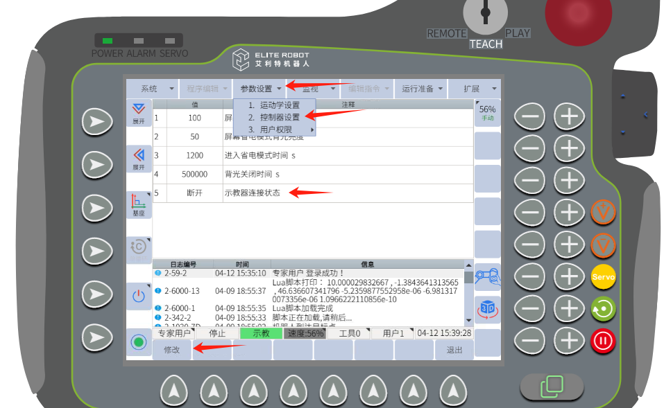 首先在示教器设置断开选项,路径:参数设置 - 控制器参数 - 示教器连接状态  - 修改 - 断开