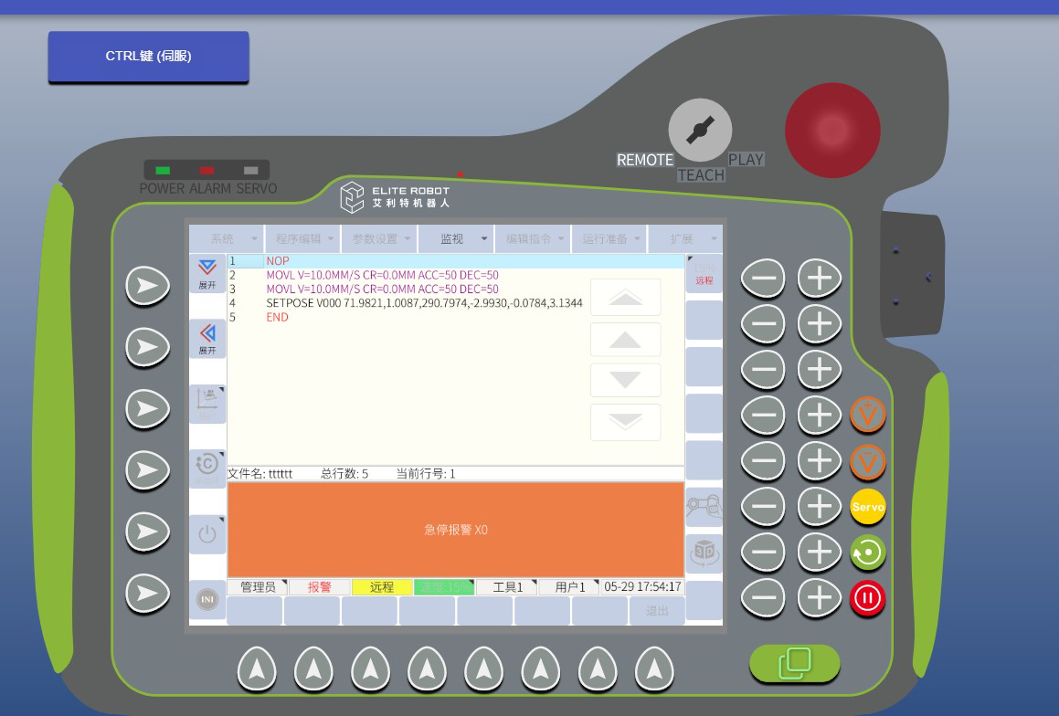 如下图为机器人拔除示教器后未屏蔽示教器急停,有急停报警X0异常