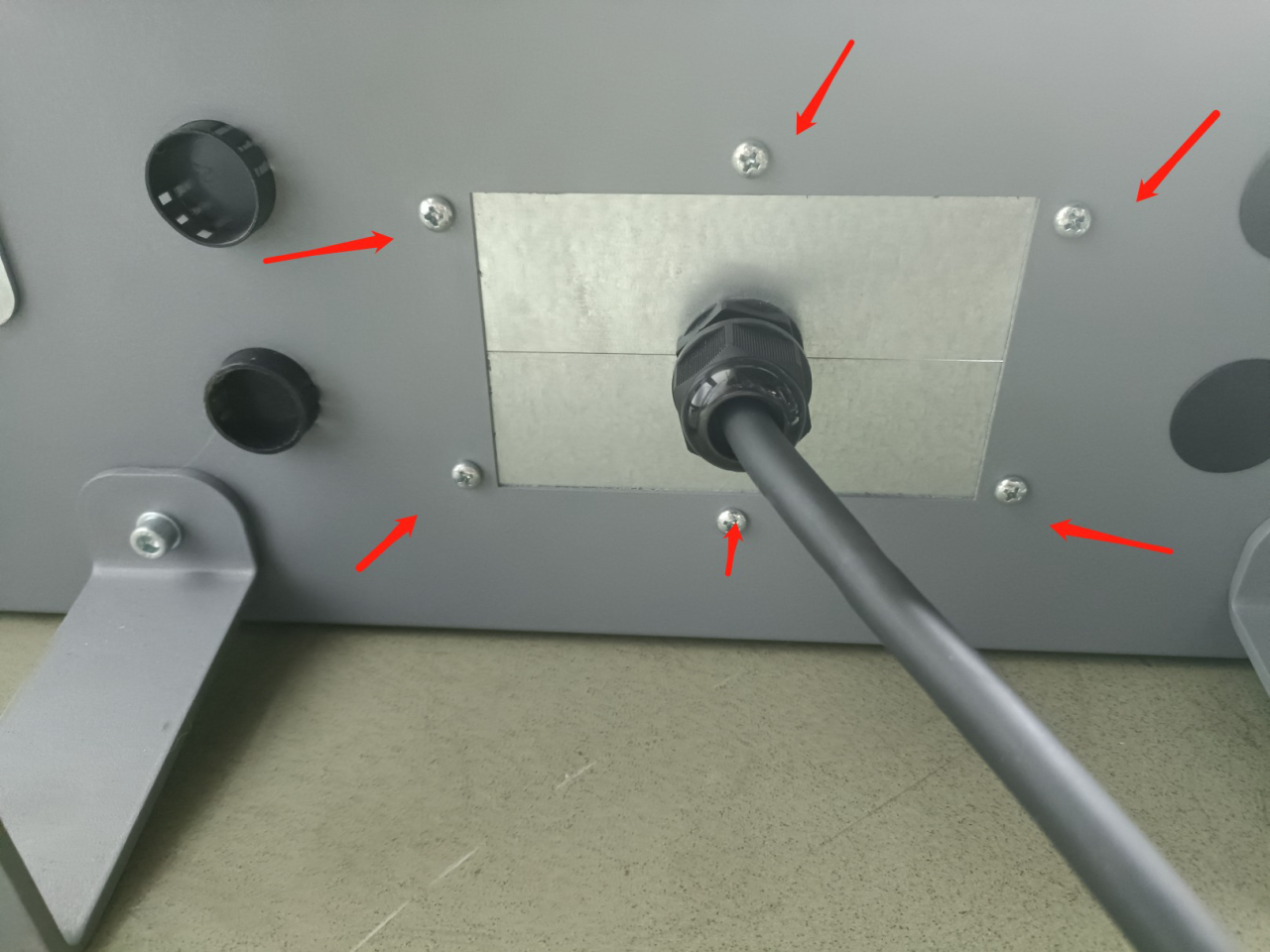 将示教器从控制柜中取出,需要把控制器底部的六颗固定螺丝取下,就可以把示教器线缆取出。如图5。