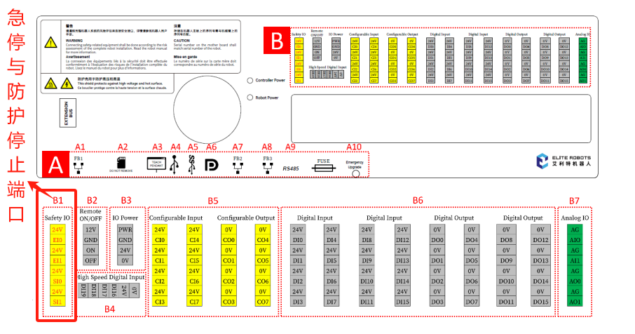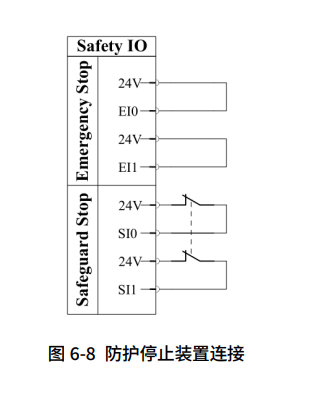 EI0-EI1是急停的两个接口,SI0-SI1是防护停止的两个接口。