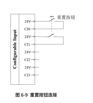 自定义安全IO输入端口为防护重置按钮,配置完成在使用对应的端口接线即可。