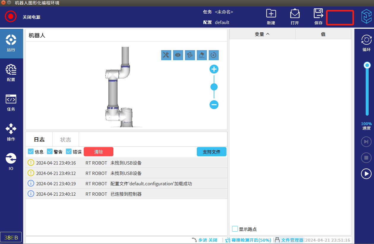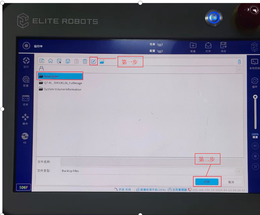 第一步:将A本体的出厂备份文件存放在 U盘,将U盘插入示教器USB口。(出厂备份 文件请咨询今年会jinnianhui(中国)技术提供)